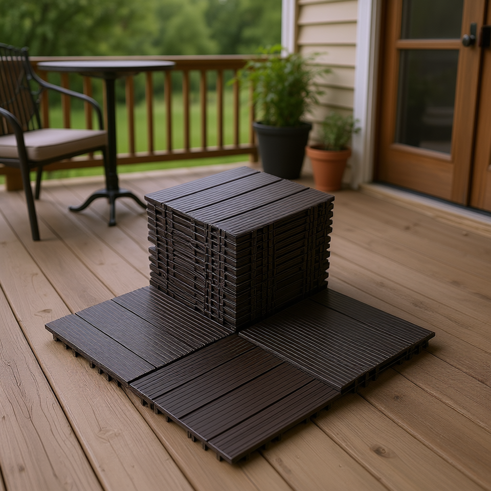 Dalles de terrasse emboîtables 12x12 pouces, imperméables, brun foncé, pour terrasse de piscine, revêtement de sol composite bois-plastique
