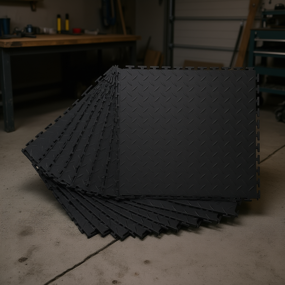 Dalles de sol de garage modulaires en PVC emboîtables 20,2 x 20,2 x 0,2 cm, tapis antidérapants à motif diamant pour sol d'atelier, lot de 8