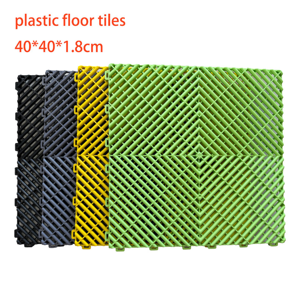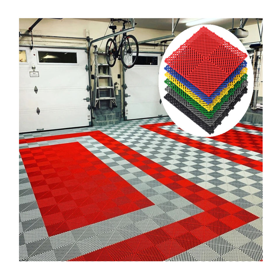 Carrelage de sol de garage en PVC imbriqué pour garage Revêtement de sol en plastique pour entrepôt Lavage de voiture Drain Dalle Dalle Rib Garage Tapis de sol