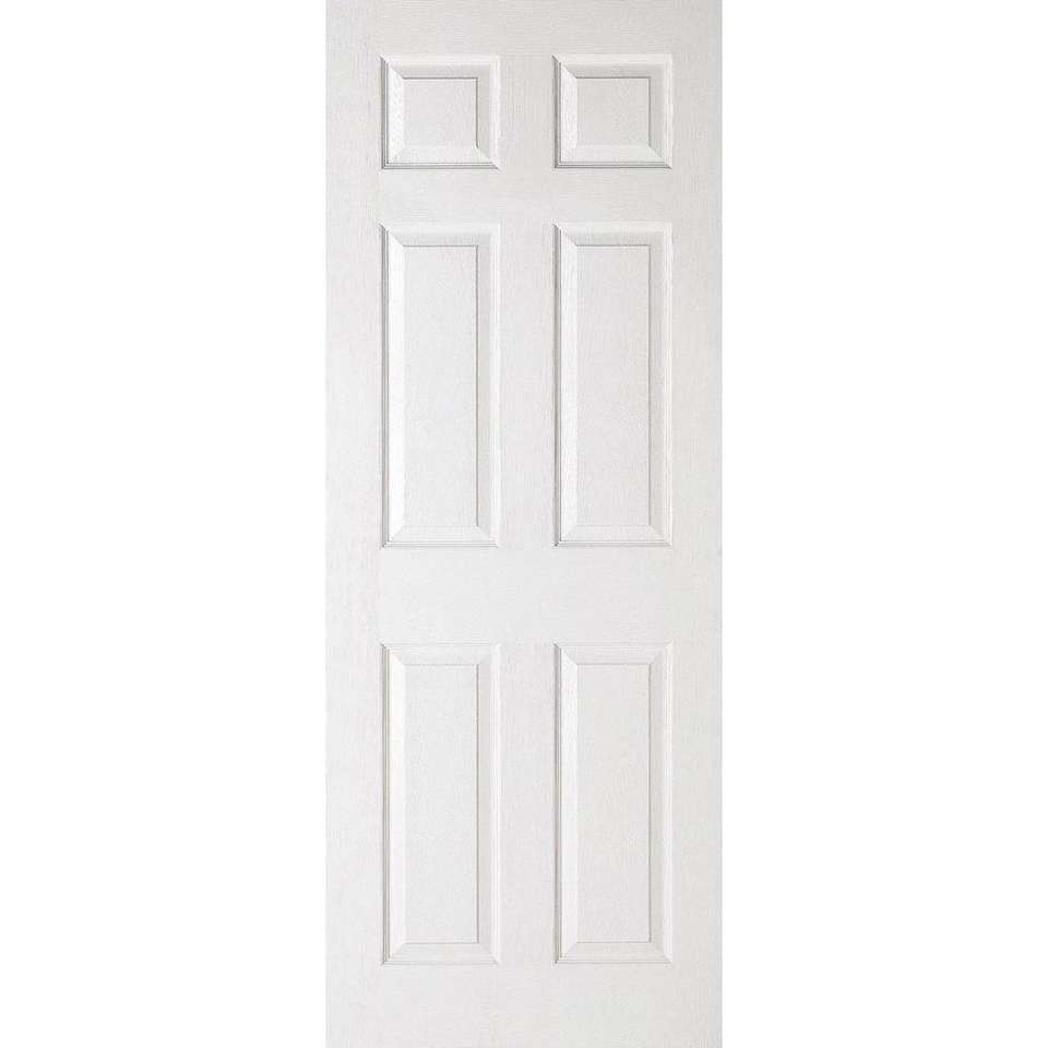 Porte intérieure à 6 panneaux en MDF peint blanc, grain de bois, apprêtée, moulurée, avec ouverture latérale pour chambre et villa