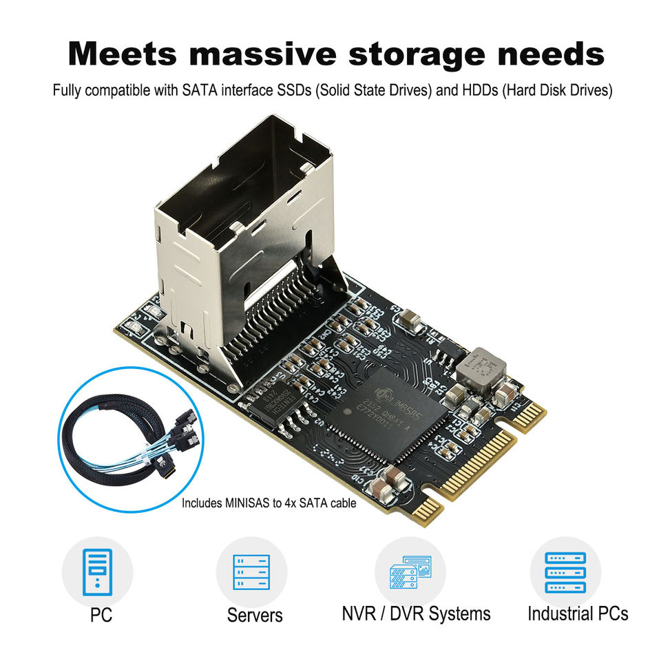Carte adaptateur interne M.2 M-key vers 4 ports SATA 3.0 6 GB/s pour ordinateur de bureau/NAS clé B clé M NGFF avec emplacement d'interface Mini SAS