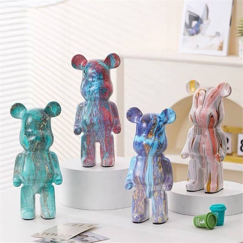 Tirelire en résine époxy sculptée en forme d'ours de dessin animé créatif et tendance, décoration moderne pour salon, style simple pour la maison