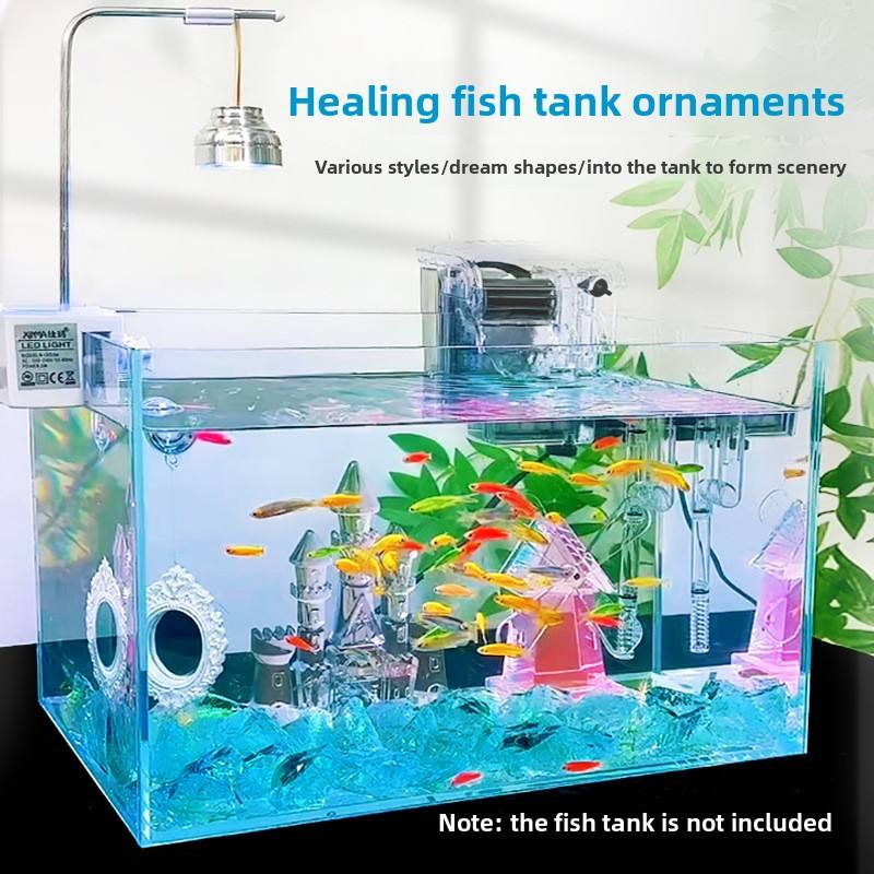 Internet Celebrity Ice Blue Crystal Stone Castle Carousel Windmill for Fish Tank Landscaping Micro Aquariums Accessories