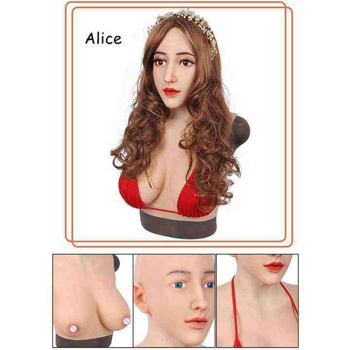 Accessoires de célébrité Internet femme Cosplay masque de tête en silicone complet avec couvre-chef de seins mâle à femelle pour déguisement de mascarade