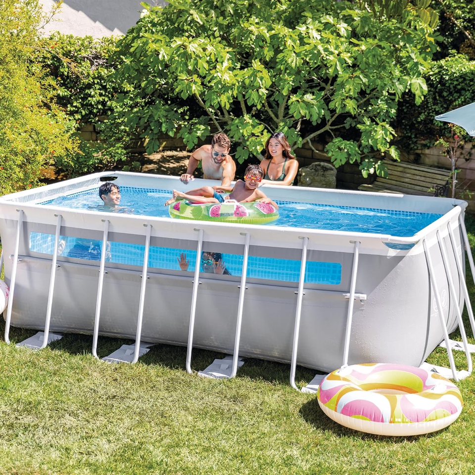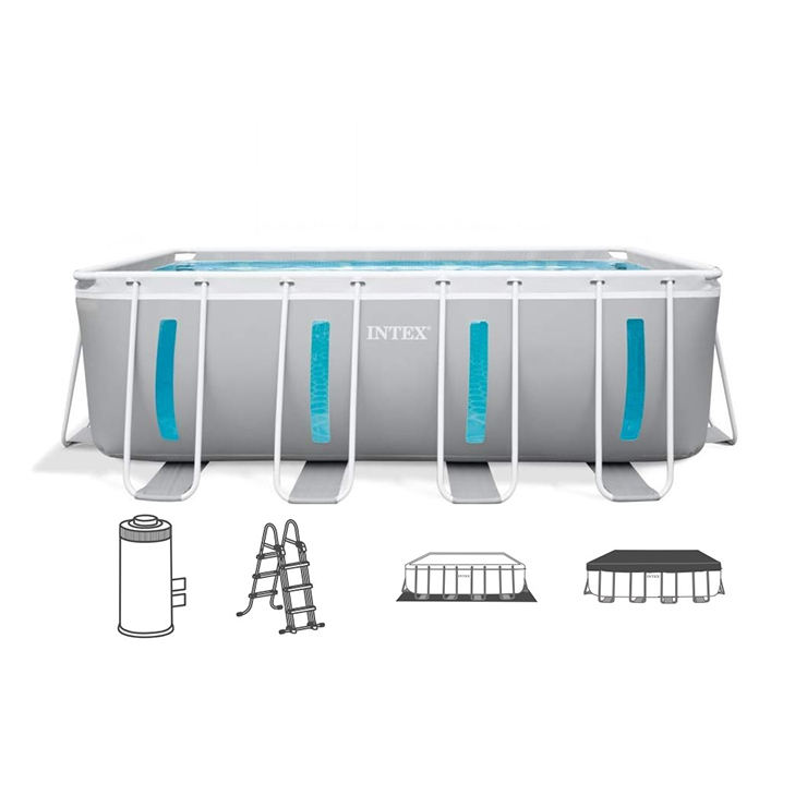 Piscine hors sol rectangulaire Intex 26770 Prism Frame Clearview avec pompe filtrante 2006 L/h, échelle, base et couverture 8418 L
