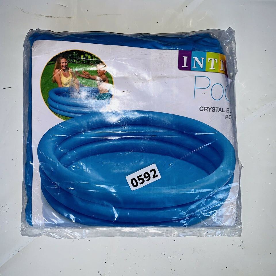 Piscine gonflable pour bébé Intex 58446, taille 66 pouces x 15 pouces, 1,68 m x 38 cm, bleu cristal, trois anneaux, pour jeux aquatiques en extérieur