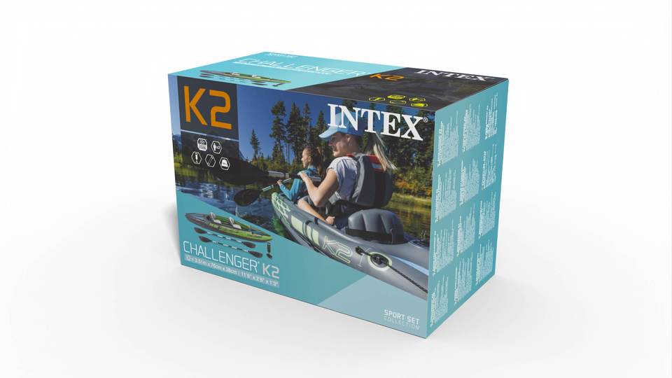 Bateau pneumatique Intex 68306 Challenger pour deux personnes, 3,1-4 m, design kayak de pêche, PVC durable pour le sauvetage