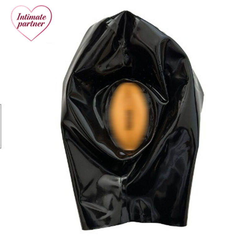 Masque en latex noir pour partenaire intime, pour hommes et femmes, bouche ouverte, fermeture éclair au dos, unisexe, produits de cosplay pour adultes