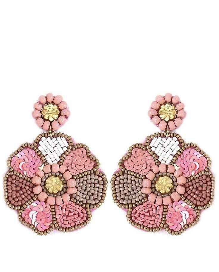 Boucles d'oreilles statement en perles de verre légères, brodées à la main avec des motifs complexes