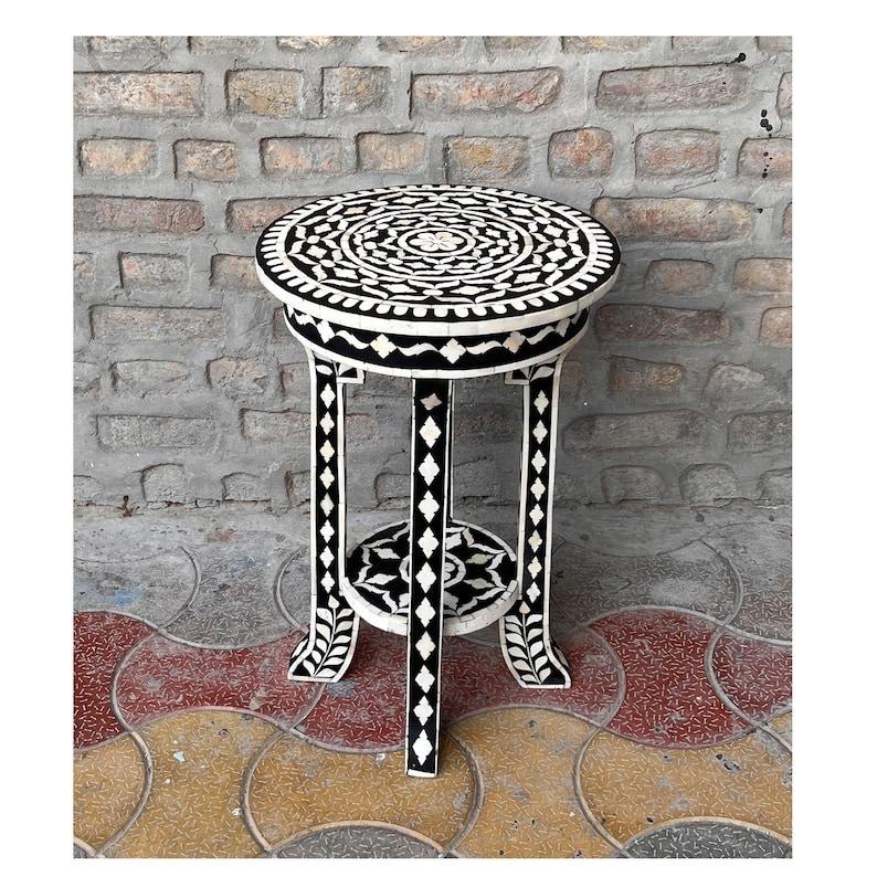 Table en incrustation d'os complexe Fabriquée à la main Décoration artistique luxueuse par l'artisanat du croissant