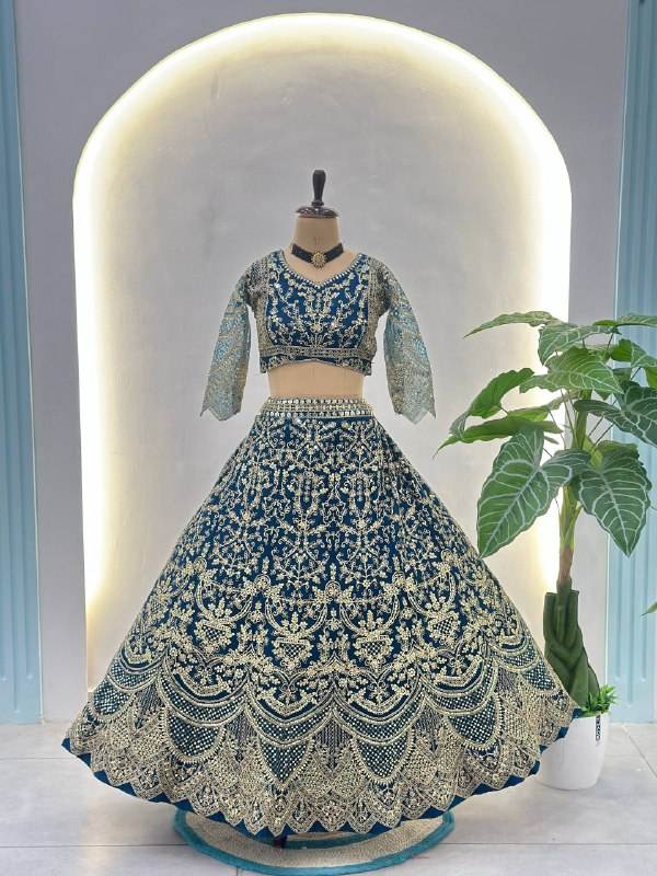 Lehenga Choli en filet papillon avec broderie complexe, couleurs riches, artisanat intemporel, matériaux recyclés, pour fêtes traditionnelles