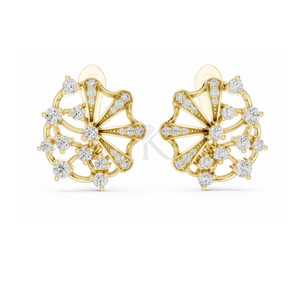 Boucles d'oreilles en forme de soleil ajourées et complexes, serties de diamants naturels fantaisie, plaquées argent, avec fermoir à pression, luxueuses, élégantes et minimalistes