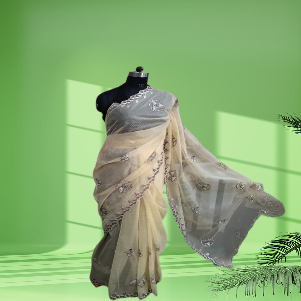 Vêtements élégants de saree en soie indienne traditionnelle finement brodée avec des conceptions complexes