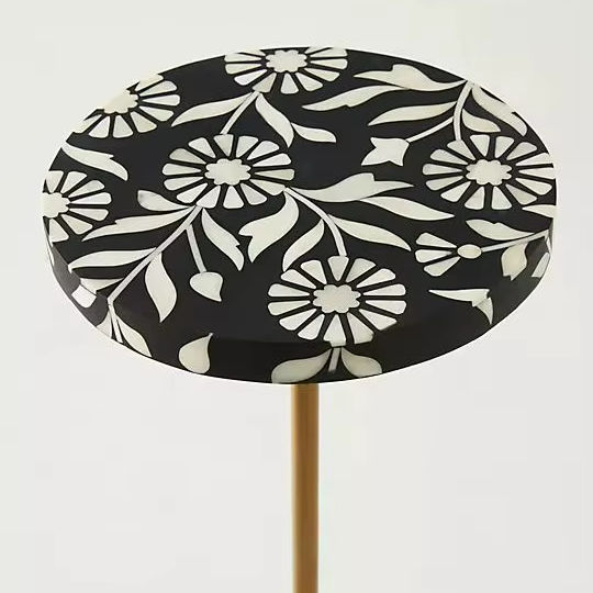 Round Living Room Coffee Table with Cone Tyle Rounded Edge Design Resin Wooden Bone Inlay Side Table Natural Crafts End Table
