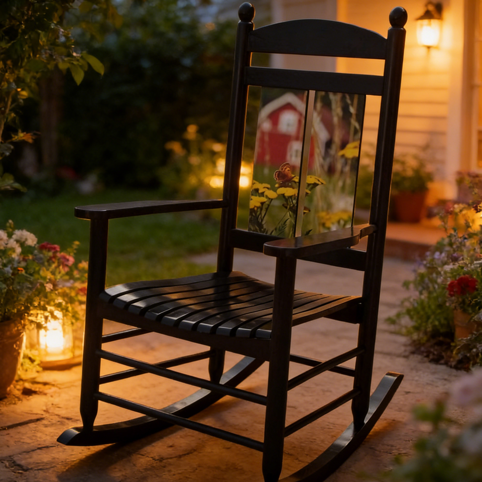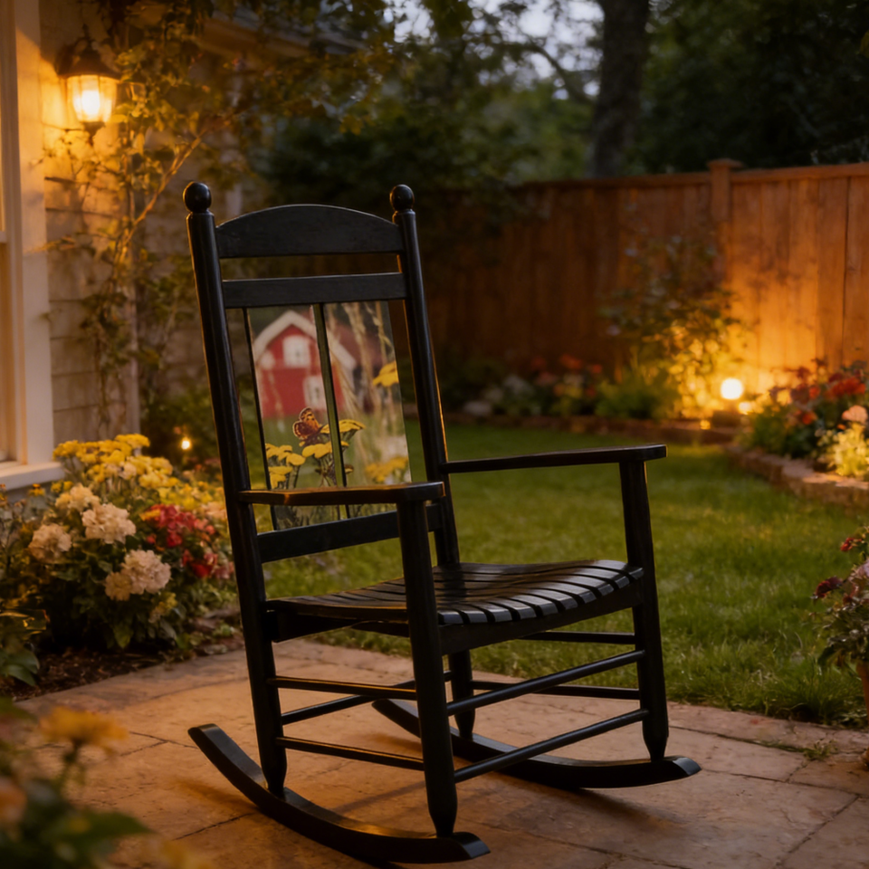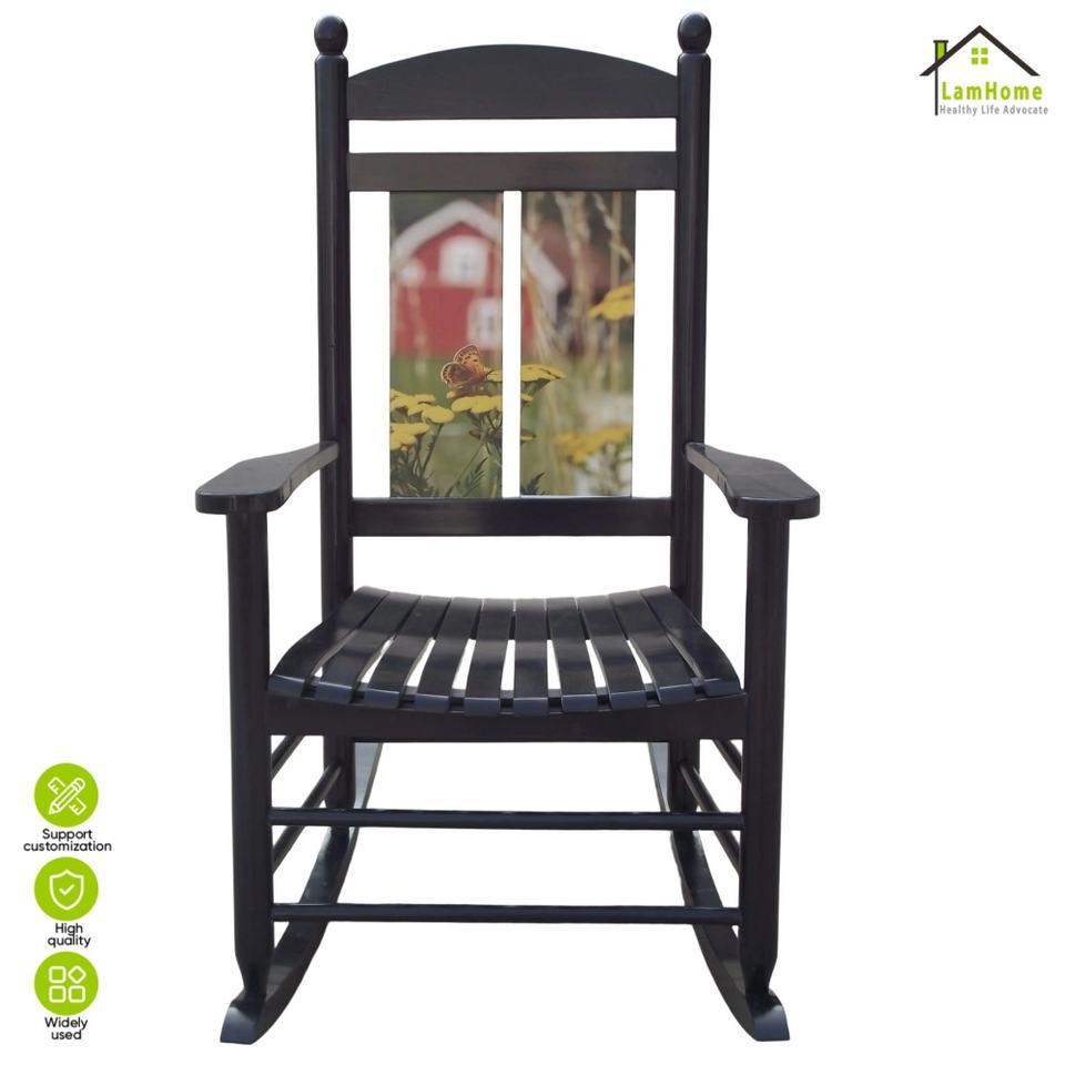 Fauteuil à bascule en bois de peuplier à impression numérique directe usine, motif paysager, pour la maison, chaise de loisirs pour adulte, vente en gros