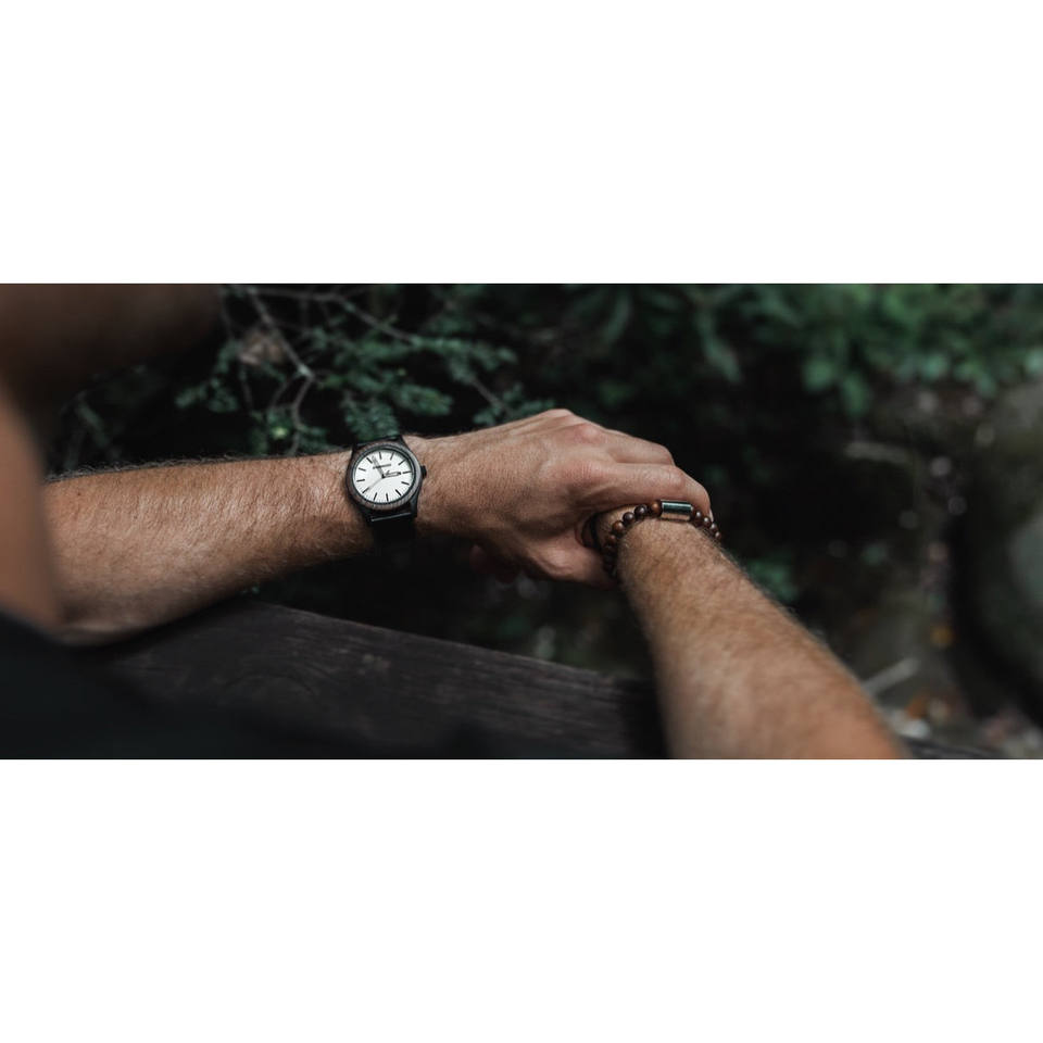 Montre à quartz analogique Inverness Walnut avec cadran en verre, boîtier et bracelet en bois de noyer