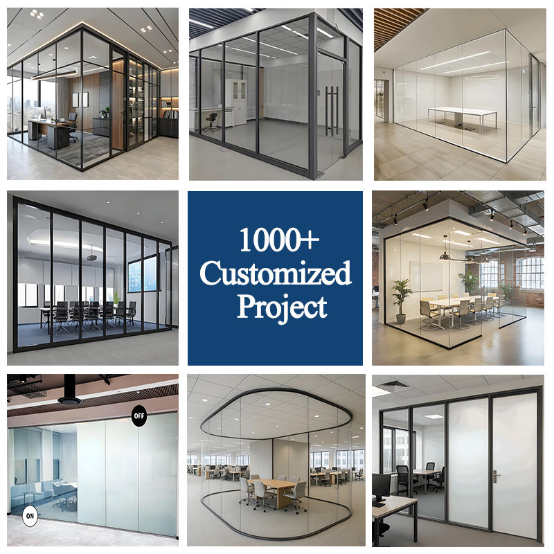 Systèmes de cloisons en verre à cadre invisible en aluminium pour bureaux et espaces commerciaux, verre trempé, bâtiments commerciaux haut de gamme