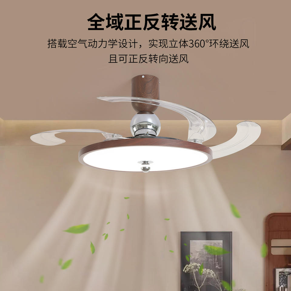 Ventilateur de plafond LED invisible avec éclairage intégré pour chambre à coucher, salle à manger, 220V, Zhongshan