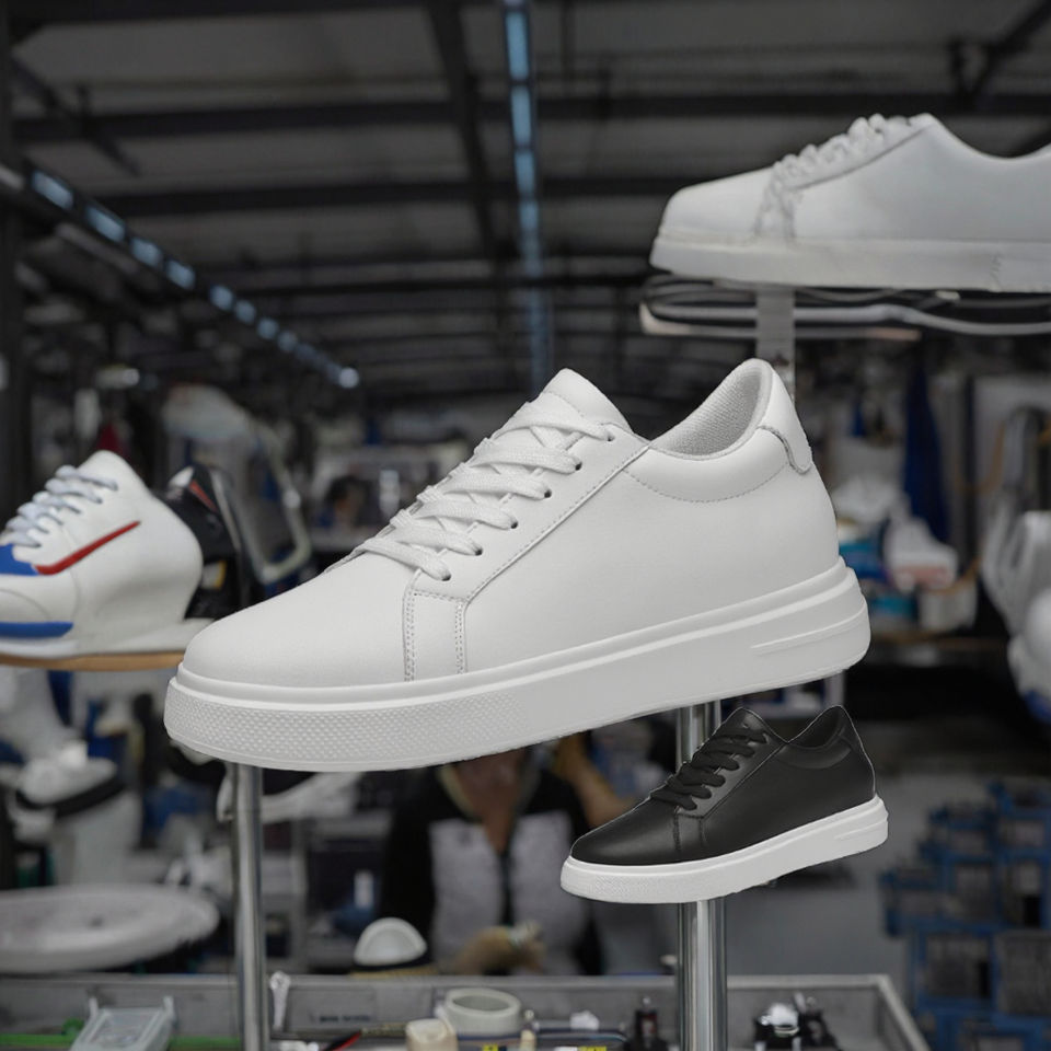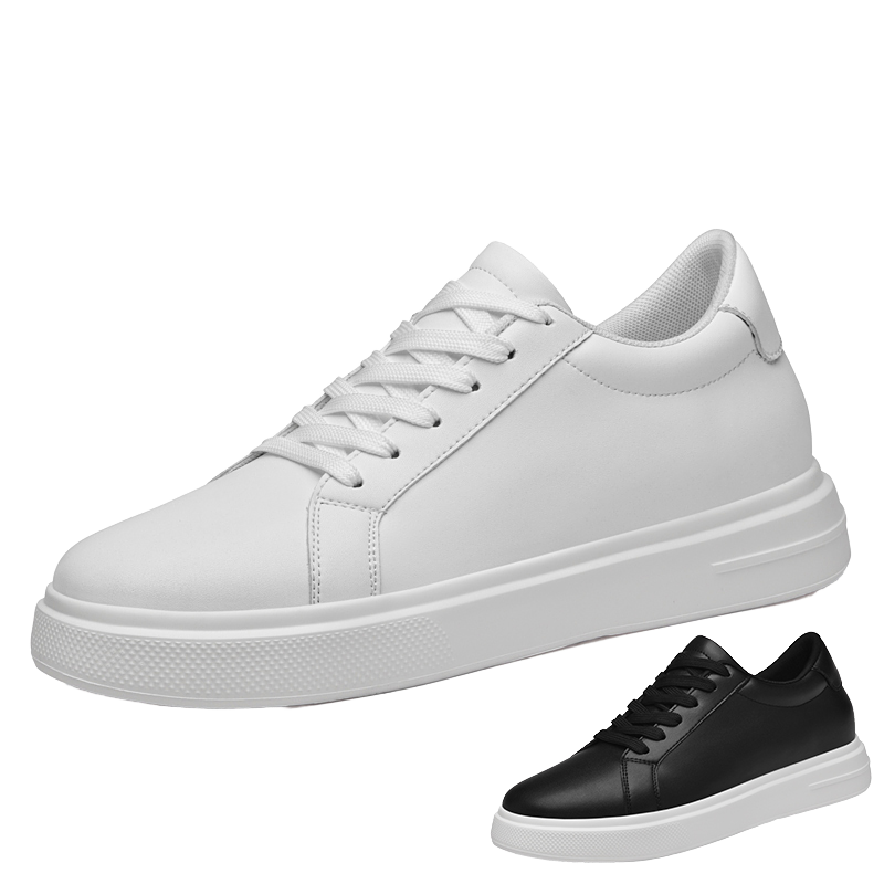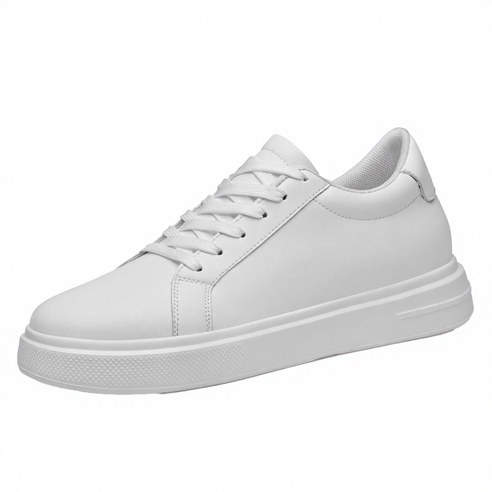 Chaussures de skate tendance pour hommes, invisiblement rehaussantes de 8 cm, à bout rond, en cuir véritable, semelle intermédiaire en PVC, respirantes, modèle Large Dock Layer Blanc