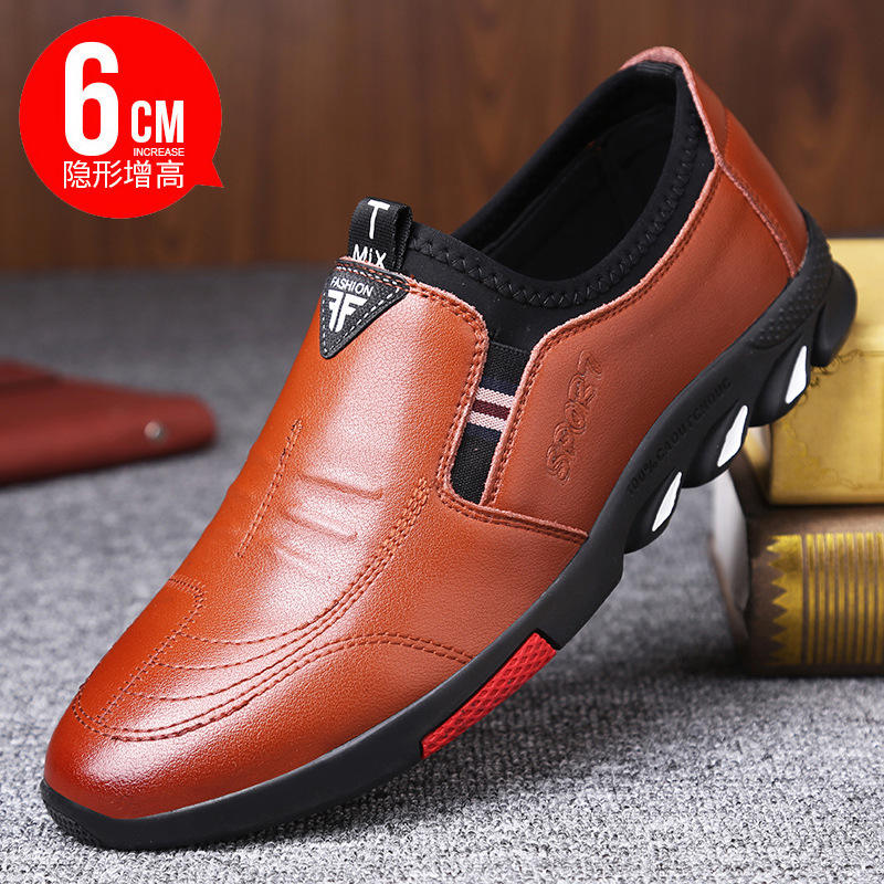 Chaussures en cuir pour hommes, invisibles, rehaussantes, à enfiler, respirantes, décontractées, à talon bas, couleur unie, style coréen tendance