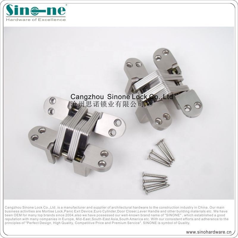 Charnière invisible modèle ignifuge finition satinée chromée extérieure charnière dissimulée