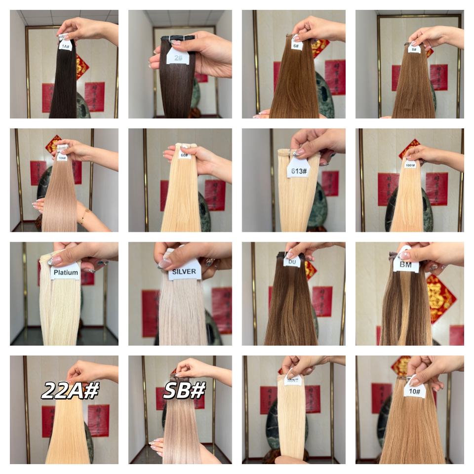 Couleur de cheveux:Trames d'extensions de cheveux russes personnalisées, couleur balayage piano clair