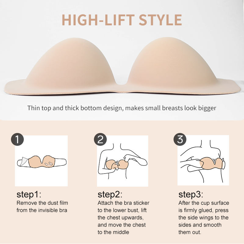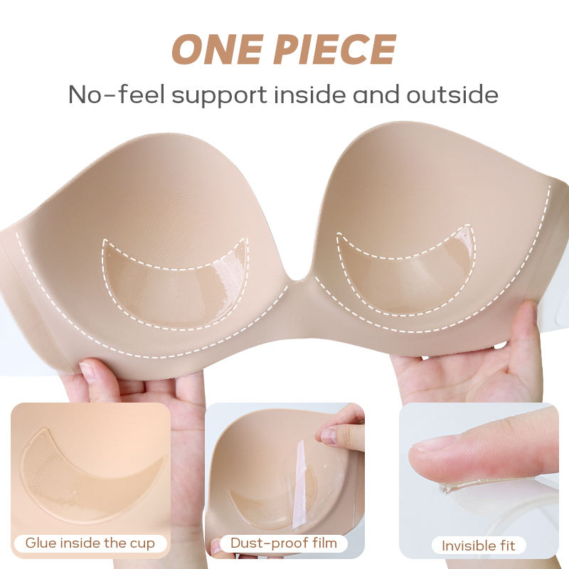 Soutien-gorge push-up invisible en éponge pour femmes - Une pièce sans couture, design floral sexy, bretelles réglables et ailes latérales transparentes en TPU