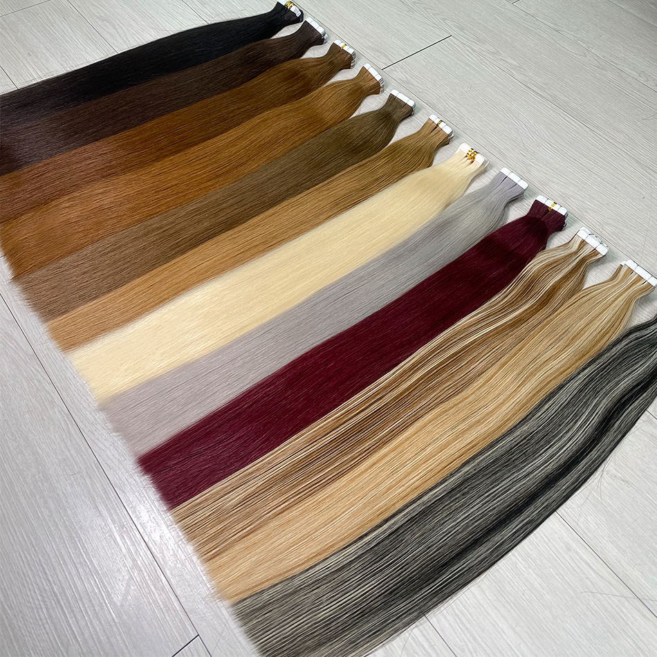 Bande invisible de cheveux vierges alignés sur les cuticules brésiliennes Bande dessinée vierge humaine dans les extensions de cheveux Remy