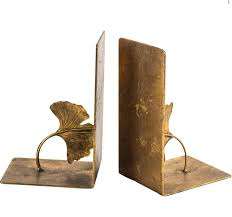 Invoke Home & Living Serre-livres décoratifs en feuille de ginko sculptés à la main pour livres, magazines en aluminium et laiton-Livre
