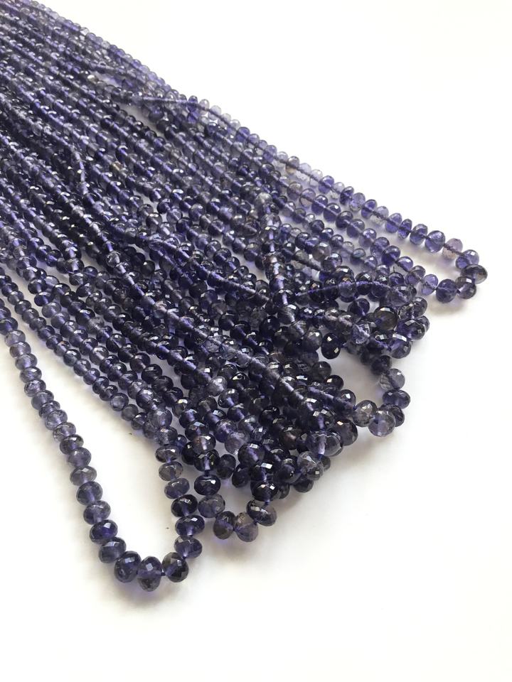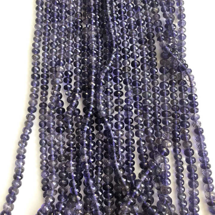 Perles d'iolite facettées en forme de rondelle, perles d'iolite de 16 pouces, perles d'iolite en forme de rondelle, perles en gros pour la fabrication de bijoux fins, pierres précieuses