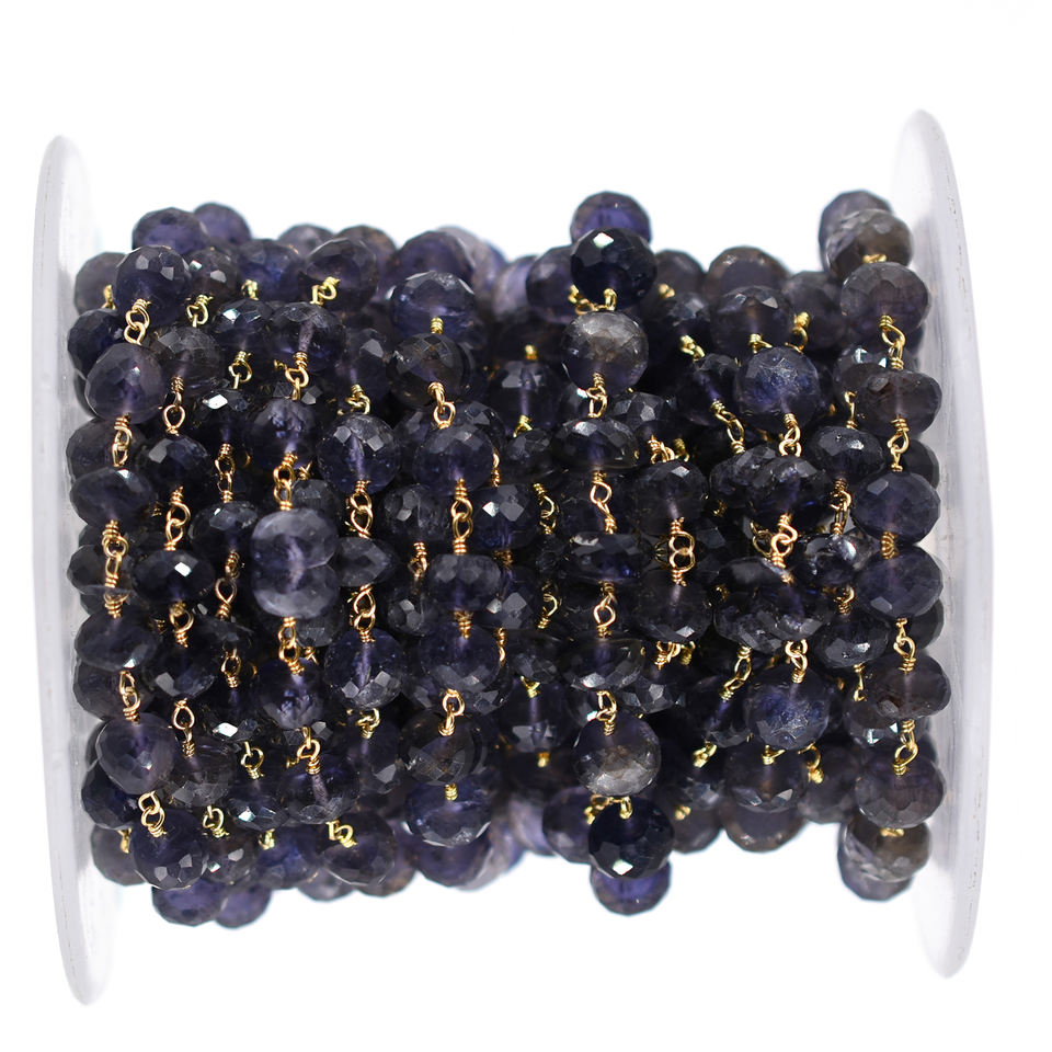 Nom du produit ::Chaîne de chapelet en laiton iolite plaqué or 18 carats, vendue au pied