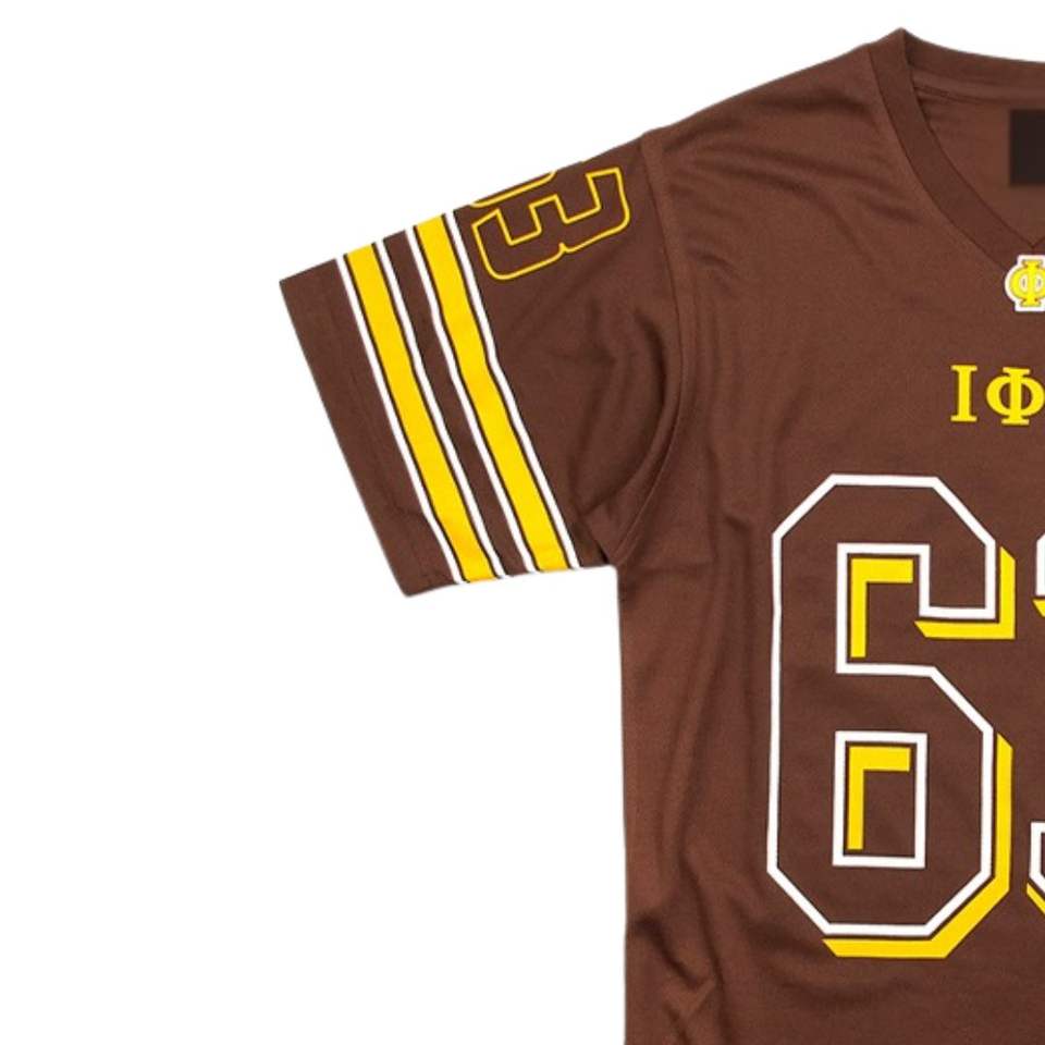 Iota Phi Theta 63 Football Jersey Tee Brown and Gold Athletic Greek Fraternity Shirt for Game Day and Events