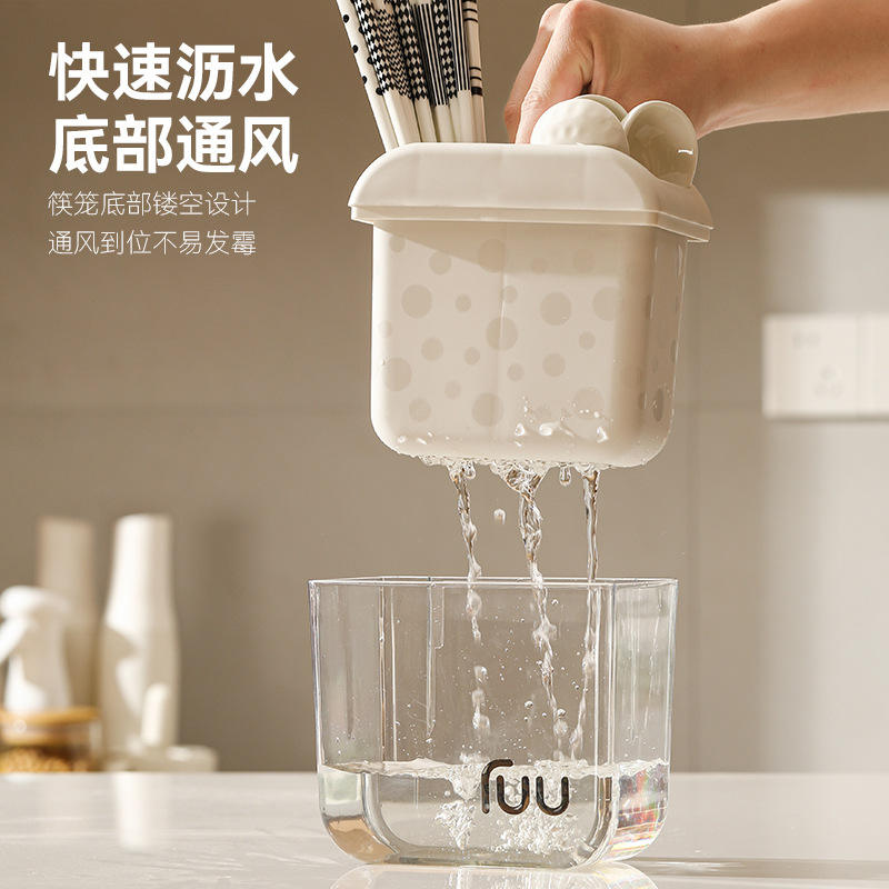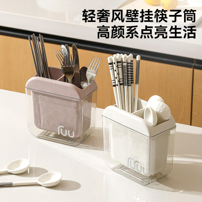 Iou Boîte de rangement murale rectangulaire sans perçage pour couverts, organisateur de cuisine pour baguettes, cuillères et fourchettes