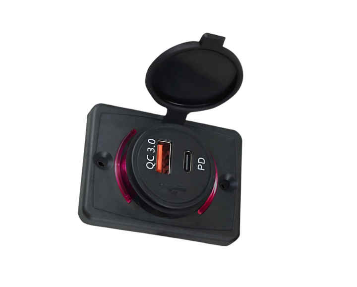 Chargeur USB pour moto étanche IP67, type A + C, QC3.0, 20W, 12-24VDC, prise de courant résistante aux flammes