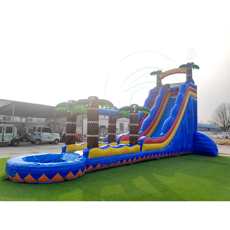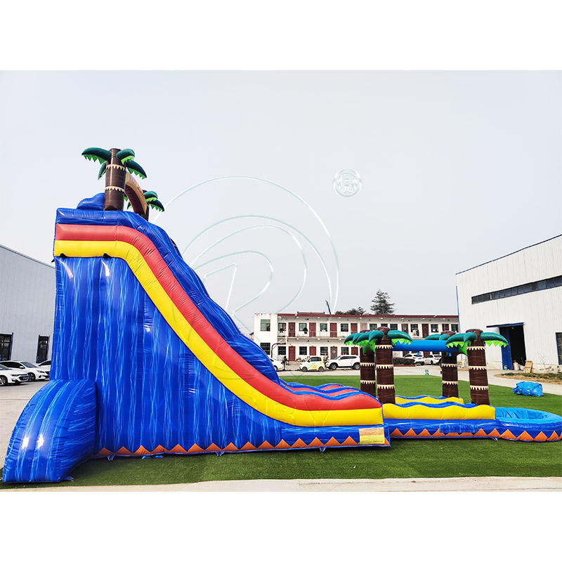 Product name:Iridescent PVC giant tropical palm inflatable water slide with pool