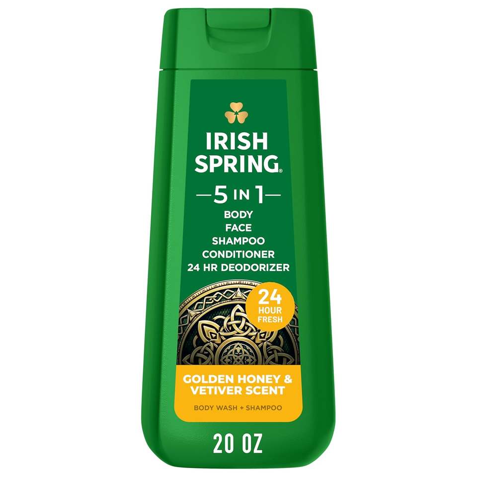 Irish Spring 5 en 1 Gel Douche Hydratant Rafraîchissant Shampoing Après-shampoing Nettoyant Visage Déodorant 24h Sans Parabène Format Voyage