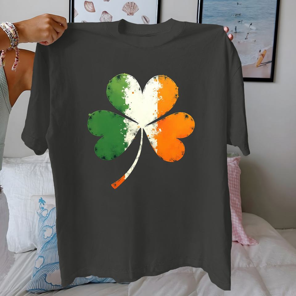 Casual Style Irish Flag Shamrock Design 100% Cotton T-Shirt for Women Comfort Fit Knitted Fabric