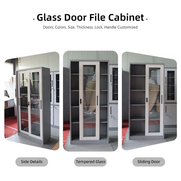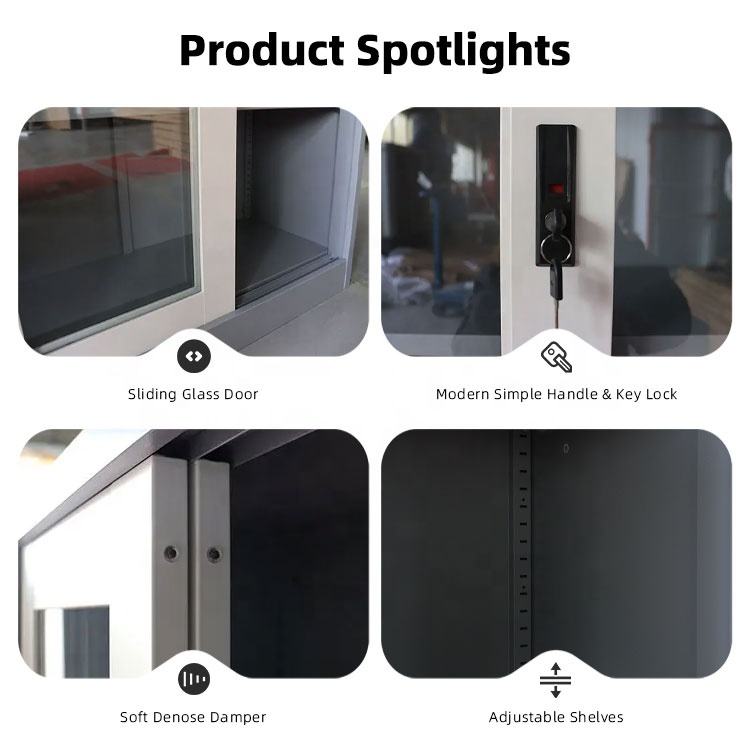 Nom du produit:Classeur coulissant en verre à 2 tiroirs pour bureau à domicile, école, salle de sport, cuisine