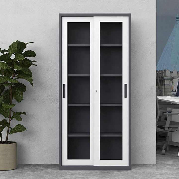 Fer 2 coulissant moderne serrure double pleine hauteur bibliothèque maison stockage meubles acier bureau métal verre porte classeur