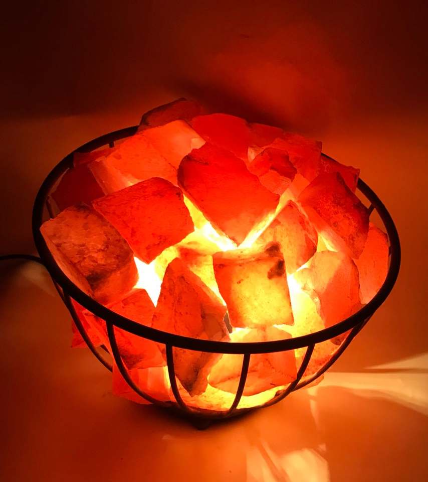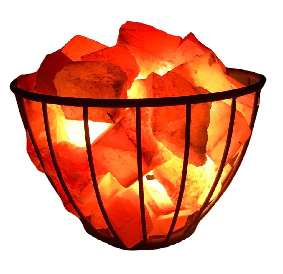 Panier en fer avec lampe de morceaux de sel de l'Himalaya rose de style fleur sculptée artisanat naturel pour la décoration de la maison Feng Shui dans la chambre à coucher