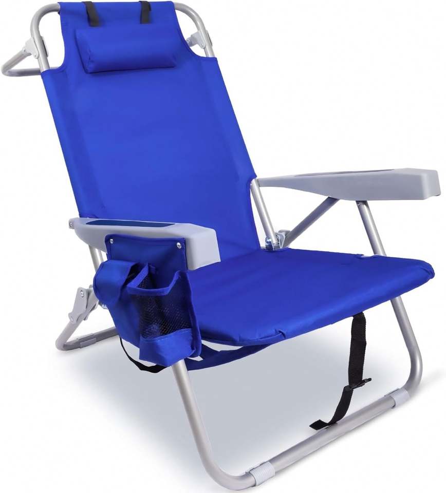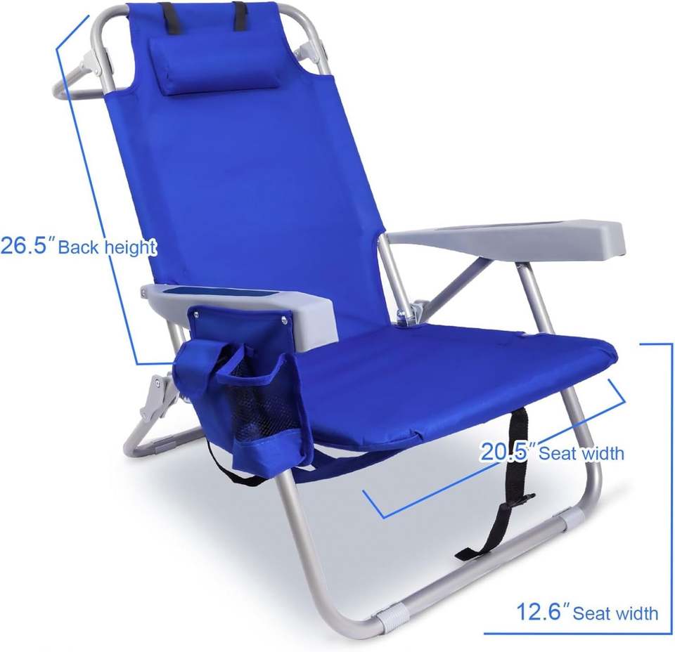Chaise de plage en fer avec sangles de sac à dos et grande pochette isotherme pour adultes - 4 positions inclinables pour utilisation en extérieur