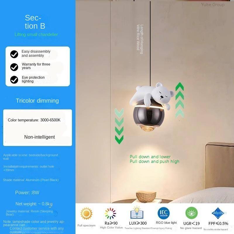 Suspension murale en fer pour chambre à coucher, restaurant, salon, style moderne simple, haut de gamme, interrupteur réglable, intensité variable, suspension en forme d'ours