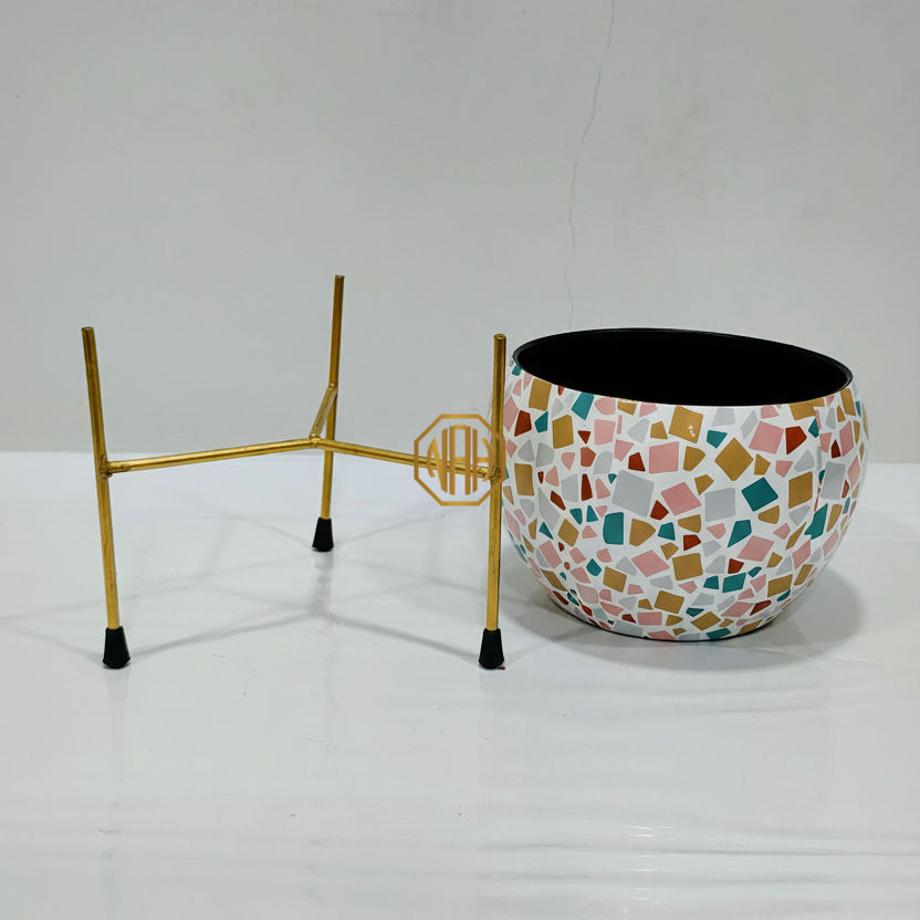 Pot de fleurs décoratif en émail de fer imprimé pour table, idéal pour salon, bureau, fête, table centrale – Fournisseur et usine en Inde