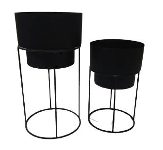 Ensemble de jardinières modernes en métal avec support en fer noir finition dorée, pot de fleurs d'intérieur/extérieur, porte-plantes sur pied pour salon.