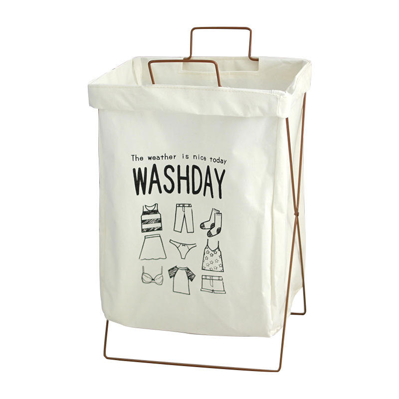 Panier à linge sale avec cadre en fer Grand panier à linge pliable Panier de rangement en tissu coton et lin