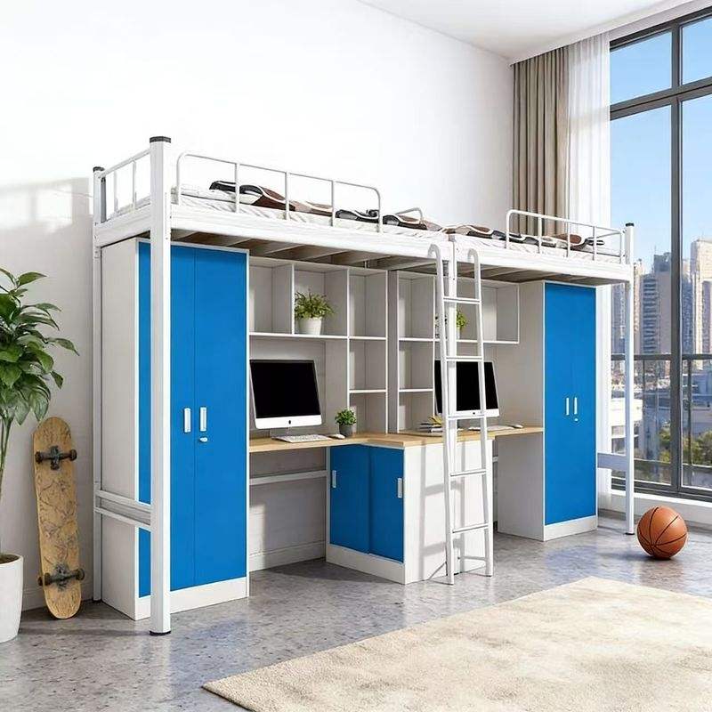 Lit superposé multifonctionnel en fer avec table inférieure intégrée pour adultes, étudiants, dortoirs scolaires et personnel