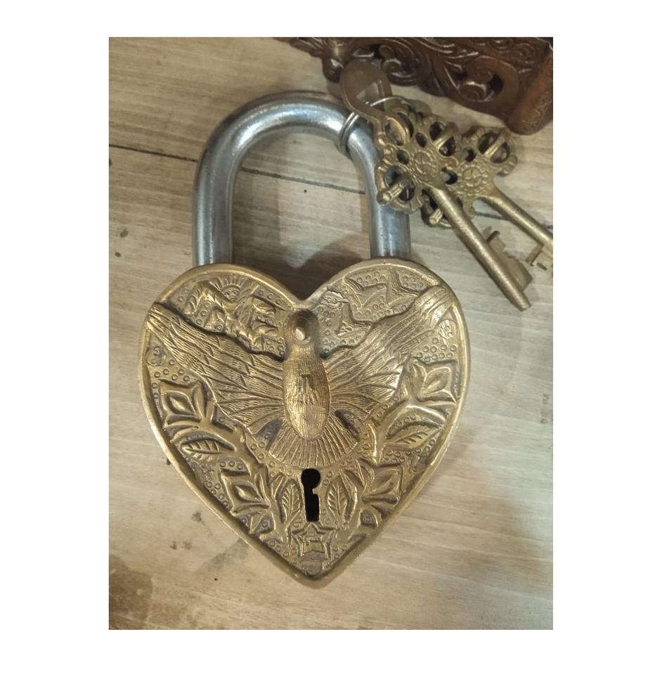 Serrure en métal, serrure antique et clé, serrure en fonte - Ancienne quincaillerie Smith, cadenas en fer gravé (4 pouces)