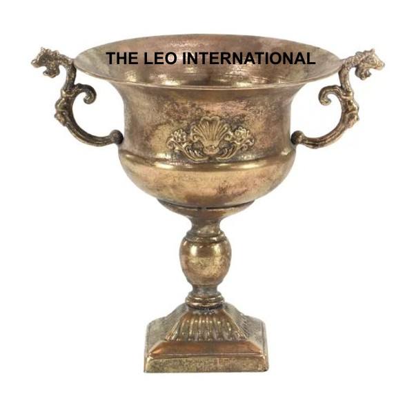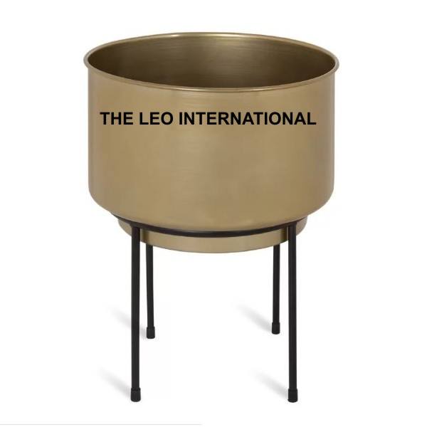 Grand pot de fleurs d'intérieur auto-arrosant, pots de fleurs pour l'extérieur, pots de jardin, support en métal, forme ronde, finition dorée