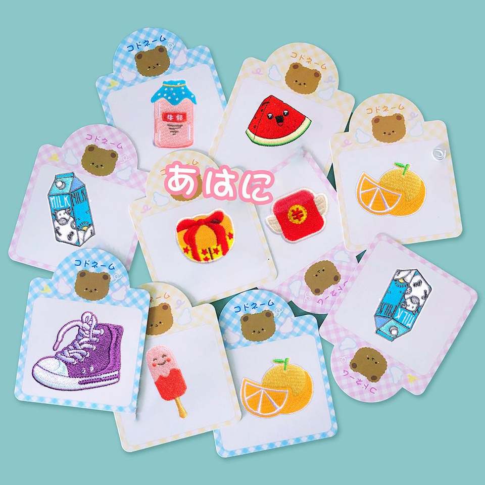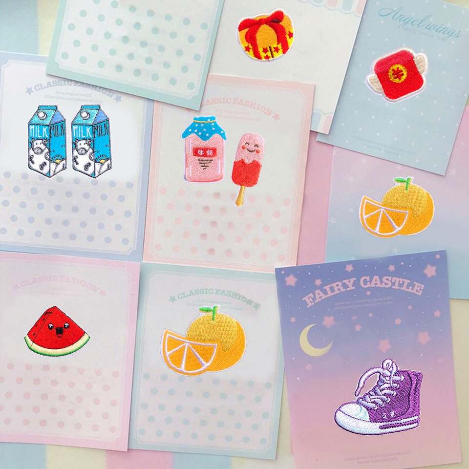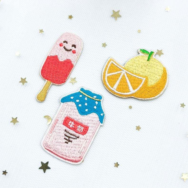 Patchs thermocollants/auto-adhésifs brodés mignons motif chaussures orange lait et sucettes glacées pastèque pour la décoration de vêtements et sacs