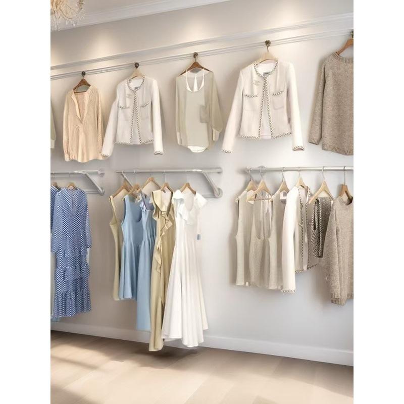 Porte-vêtements mural portable en fer pour magasin de détail, étagère latérale suspendue, tringle à vêtements, pour femmes et enfants, finition polie carrée
